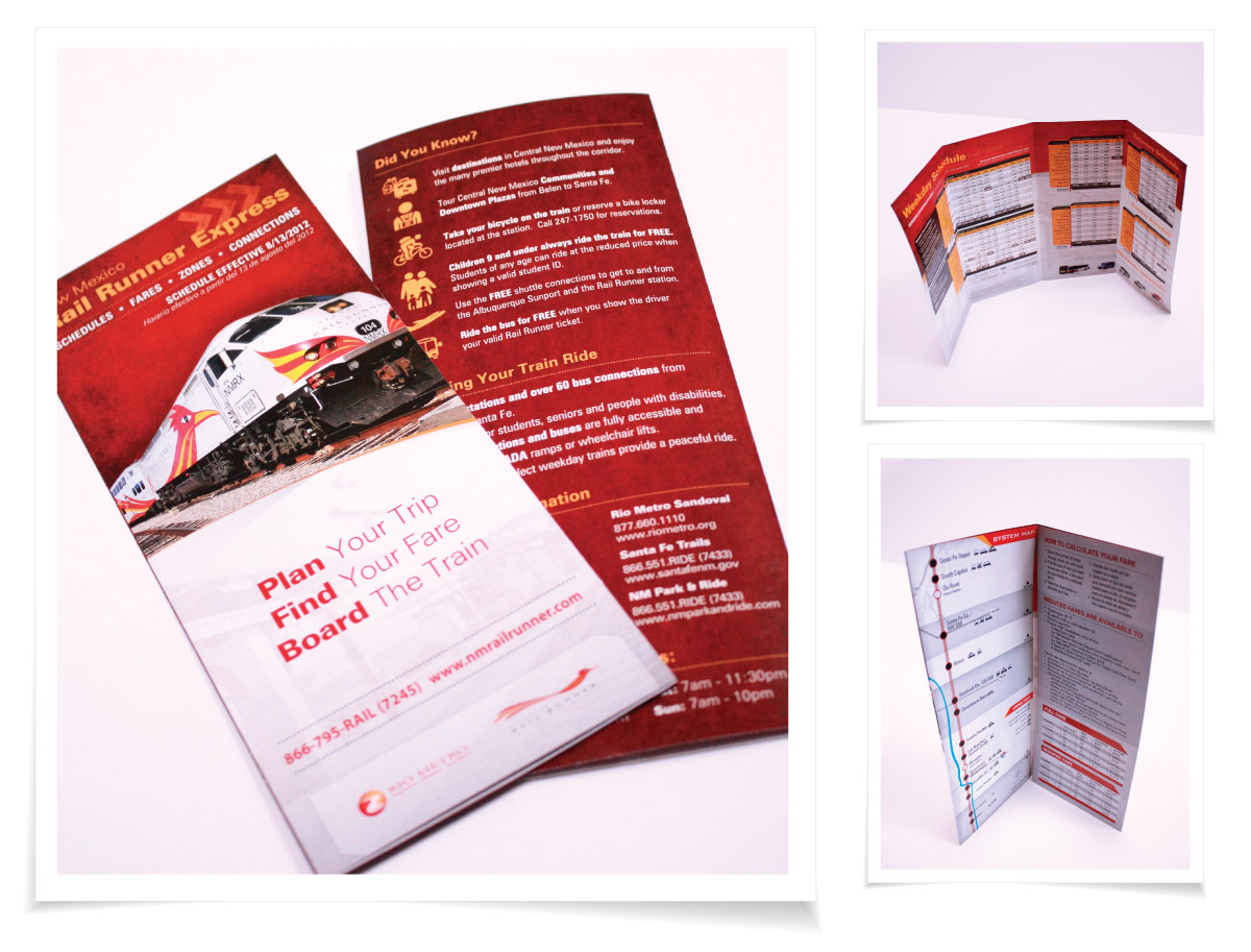 Rio Metro RTD is a bus and rail public transportation service, and is comprised of four counties that serve the most densely populated real estate in New Mexico. Its commuter flagship, The New Mexico Rail Runner Express (NMRX), spans more than 90 miles and connects New Mexico's largest city with its capital city.With the intercity commuter train gaining momentum and brand recognition, the connected rural bus systems began to grow exponentially as well. Therefore, communication with the public through consistent branding of Rio Metro, as the parent agency, became a top priority.