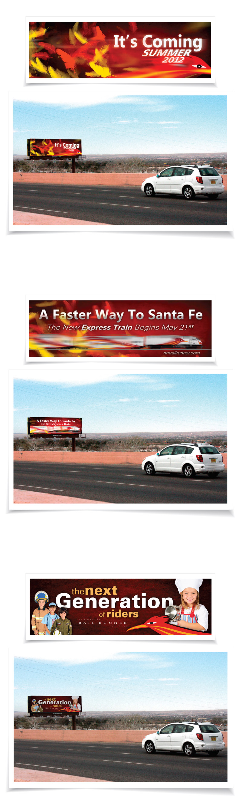 Rio Metro RTD is a bus and rail public transportation service, and is comprised of four counties that serve the most densely populated real estate in New Mexico. Its commuter flagship, The New Mexico Rail Runner Express (NMRX), spans more than 90 miles and connects New Mexico's largest city with its capital city.With the intercity commuter train gaining momentum and brand recognition, the connected rural bus systems began to grow exponentially as well. Therefore, communication with the public through consistent branding of Rio Metro, as the parent agency, became a top priority.